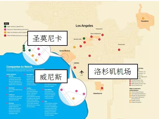 由于大部分创业公司坐落在海滩附近,这里被形象地称为“硅滩”。其中圣莫尼卡和威尼斯两地是初创企业为集中的区域,上千家创业公司构成了其创业生态系统,其中不乏独角兽企业和创业公司。