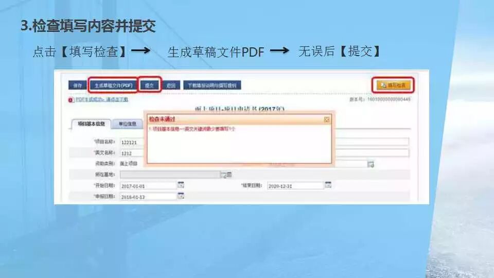 2.依托单位提交电子申请书时,需通过信息系统逐项确认。